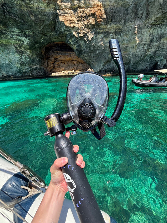 Dzięki naszej uzupełnianej butli powietrznej z maską, twoje marzenie stanie się rzeczywistością. Koniec z drogim sprzętem do nurkowania. Nasze wyposażenie zapewni ci aż 10 minut powietrza pod wodą.